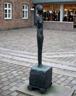 Ved Det gamle Rådhus i Nørregade står bronzestatuen ”Kvinde på Kærre”, som er lavet af Alberto Giacometti.